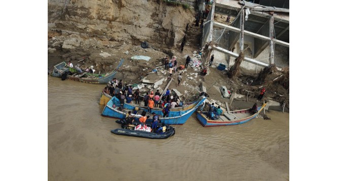 Tim BAZNAS Tanggap Bencana (BTB) menyalurkan logistik berupa beras untuk kebutuhan Dapur Umum menggunakan perahu karet milik Polairud, setelah jembatan utama Kutablang dan dua jembatan lainnya yang menghubungkan Bireuen–Aceh Utara tidak dapat dilalui.